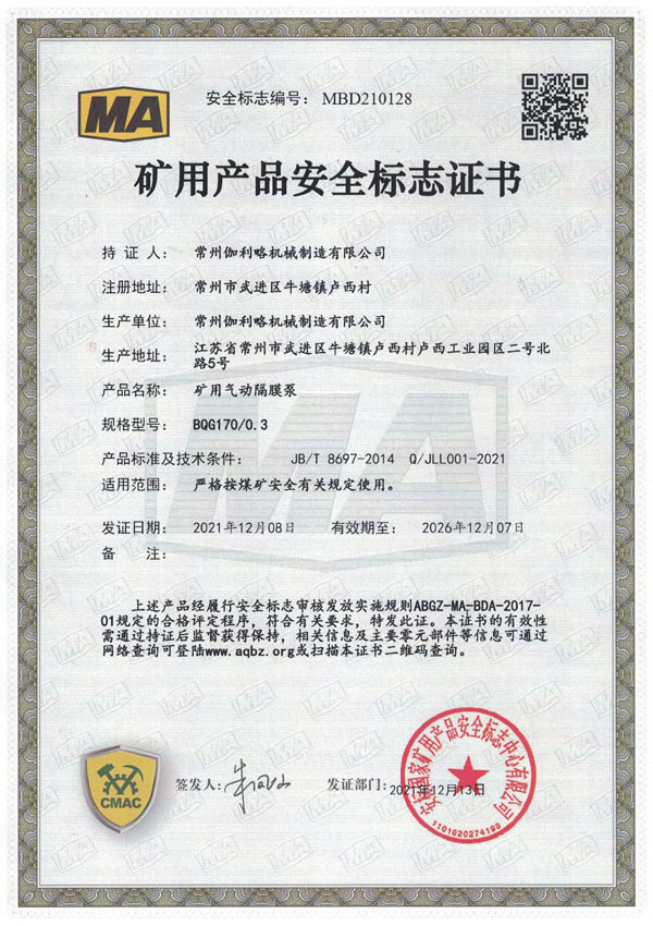 • 礦用安全標(biāo)志證書(shū)-BQG170/0.3