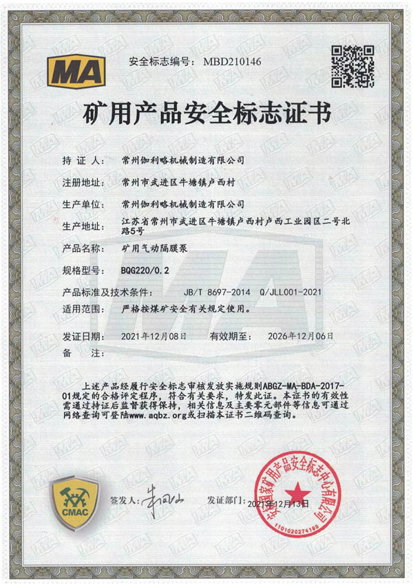 • 礦用安全標(biāo)志證書(shū)-BQG220/0.2