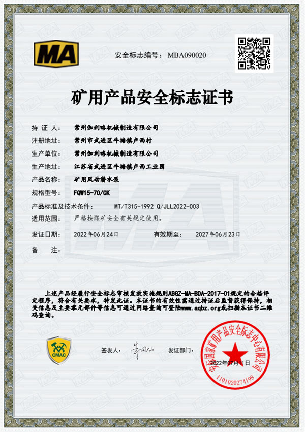 • 礦用安全標(biāo)志證書(shū)-BQG550/0.3